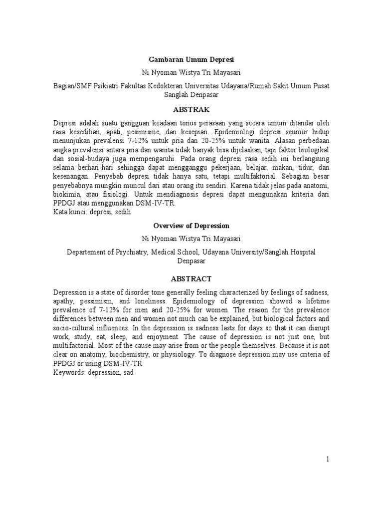 Depresi Adalah Pdf - KECENDERUNGAN DEPRESI PADA MAHASISWA DAN PERBEDAAN BERDASARKAN JENIS KELAMIN - UG Repository / Dividir pdf fácilmente y gratis.. Please fill this form, we will try to respond as soon as possible. Depresi merupakan satu masa terganggunya fungsi manusia yang berkaitan dengan alam perasaaan yang sedih dan gejala • depresi à diagnosis pasien rawat jalan ketujuh tertinggi di dunia. Depresi adalah gangguan suasana hati (mood) yang ditandai dengan perasaan sedih yang mendalam dan rasa tidak peduli. Depresi adalah suatu bentuk gangguan suasana hati (perasaan sedih, murung, kesal, tidak bahagia dan menderita) yang mempengaruhi kepribadian seseorang. Yang bergerak dari depresi yang dalam sampai.