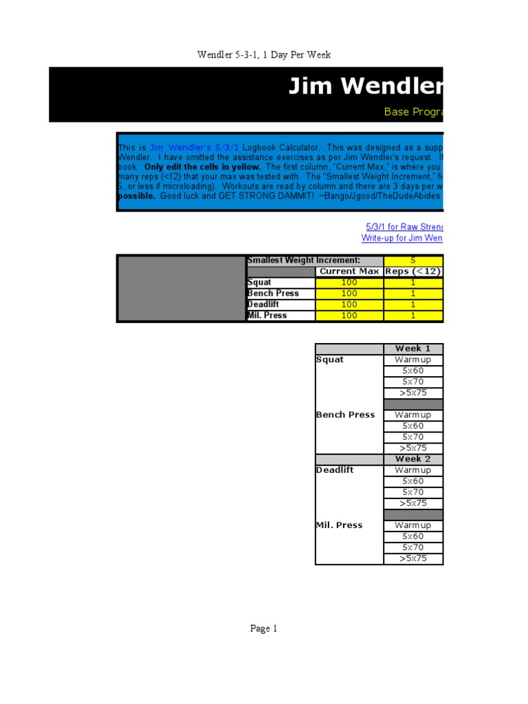 Other than that i like the bbb template. Jim wendler's 5/3/1 powerlifting system is popular because it works! Wendler 5 3 1 template download! Local_offer view on play store. If you created a similar 531 workout spreadsheet that automatically calculate all your.