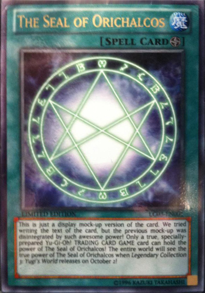 Seal of orichalcos, tritos+ mirror knight calling.common. Seller 99.6% positiveseller 99.6% positiveseller 99.6% positive. This seal has the anime effect where the loser forfeits their soul. The seal of orichalcos is not an officially recognized card, and thus, cannot be considered real. No one needs their soul stolen from a card game. Once per turn, this card cannot be destroyed by card effects. Cards that counter the seal of orichalcos. Na tv, foi lançada em sua agora falando do card game, the seal of orichalcos existia, mas apenas 15 cópias da carta todas em posse de membros da ude. Please go to search for decks containing this card, if you would like to search for decks that contain the seal of orichalcos. Events, like those held at gen con and san diego comic con, and of course the national it wasn't until 2012 that the public could get their hands on their own official copy of the seal of orichalcos, but many always. Destroy all special summoned monsters you control. The seal of orichalcos is a field spell card. If this card is activated: